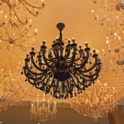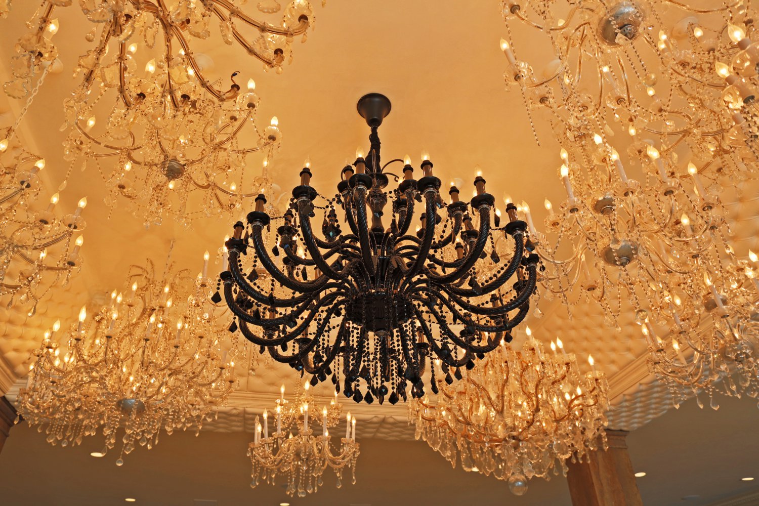 3,500-square-foot ballroom with approximately 15 stunning chandeliers