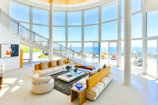 The living room showcases a stunning floor-to-ceiling picture window overlooking the Malibu coastline and ocean. This extraordinary view is often referred to by locals as “The Queen’s Necklace,” as the evening lights stretch from Malibu through Santa Monica and down to Palos Verdes, resembling a dazzling necklace of lights or diamonds fit for a queen.