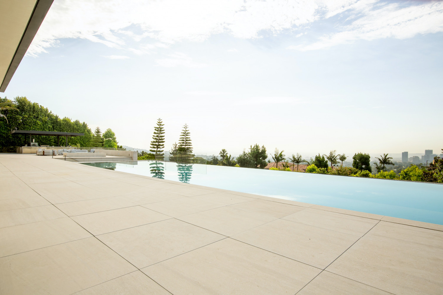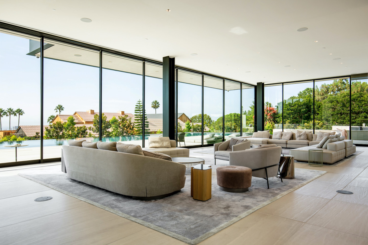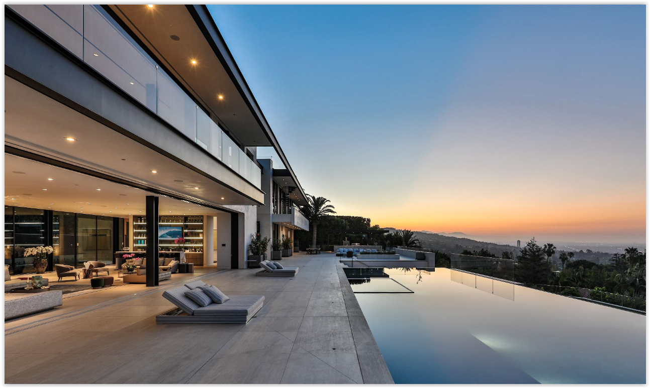 This stunning modern estate offers sweeping Los Angeles views and elegant grounds, perfect for high-end private events. The property features a spacious open floor plan that flows seamlessly to an infinity pool, as well as a screening room for added entertainment options.