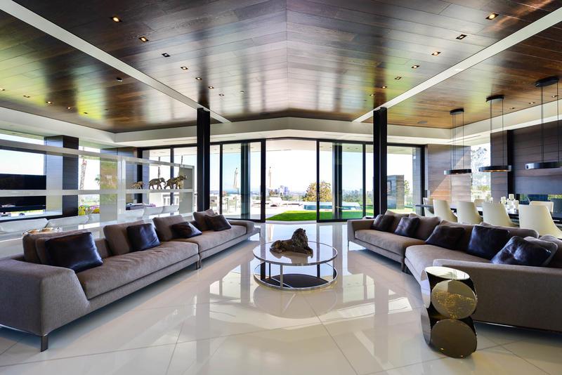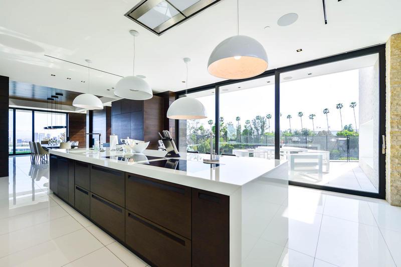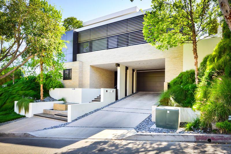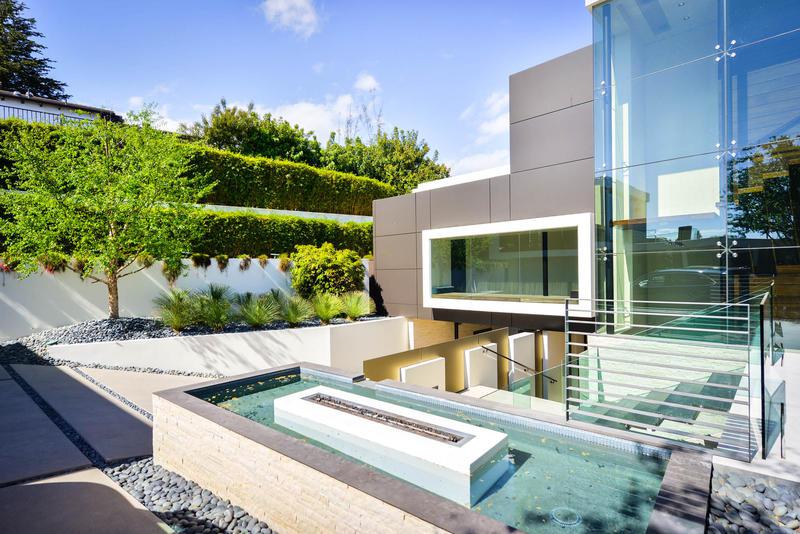 Private Estate Wedding Venues Los Angeles -lovely modern home has great Hollywood Hills and downtown LA. Patio and lawn is ideal for cocktails and appetizers. This modern beauty has sliding glass doors that open up the living room to the outdoors. There are unique water features on and around the property that are really beautiful.