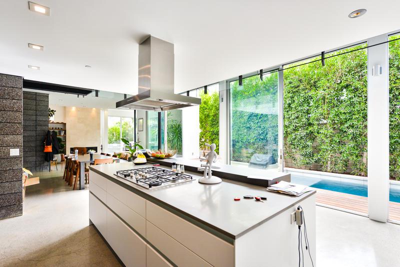 Private Event House Space Venice California for a special cocktail party. This lovely modern home is located next to the canal in Venice Beach, California. This property has a great wooden deck overlooking the city, along with a small lap pool with an open floor plan design.