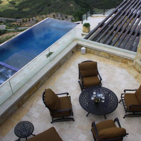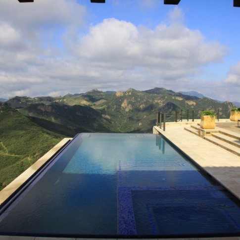 Private Malibu estate with panoramic views of Southern California. This property has a helicopter pad for a private ceremony or cocktail hour, infinity pool and is surrounded by vineyards. Master bedroom for the bride to get ready and a screening room for the groom to spend time with the groomsmen.